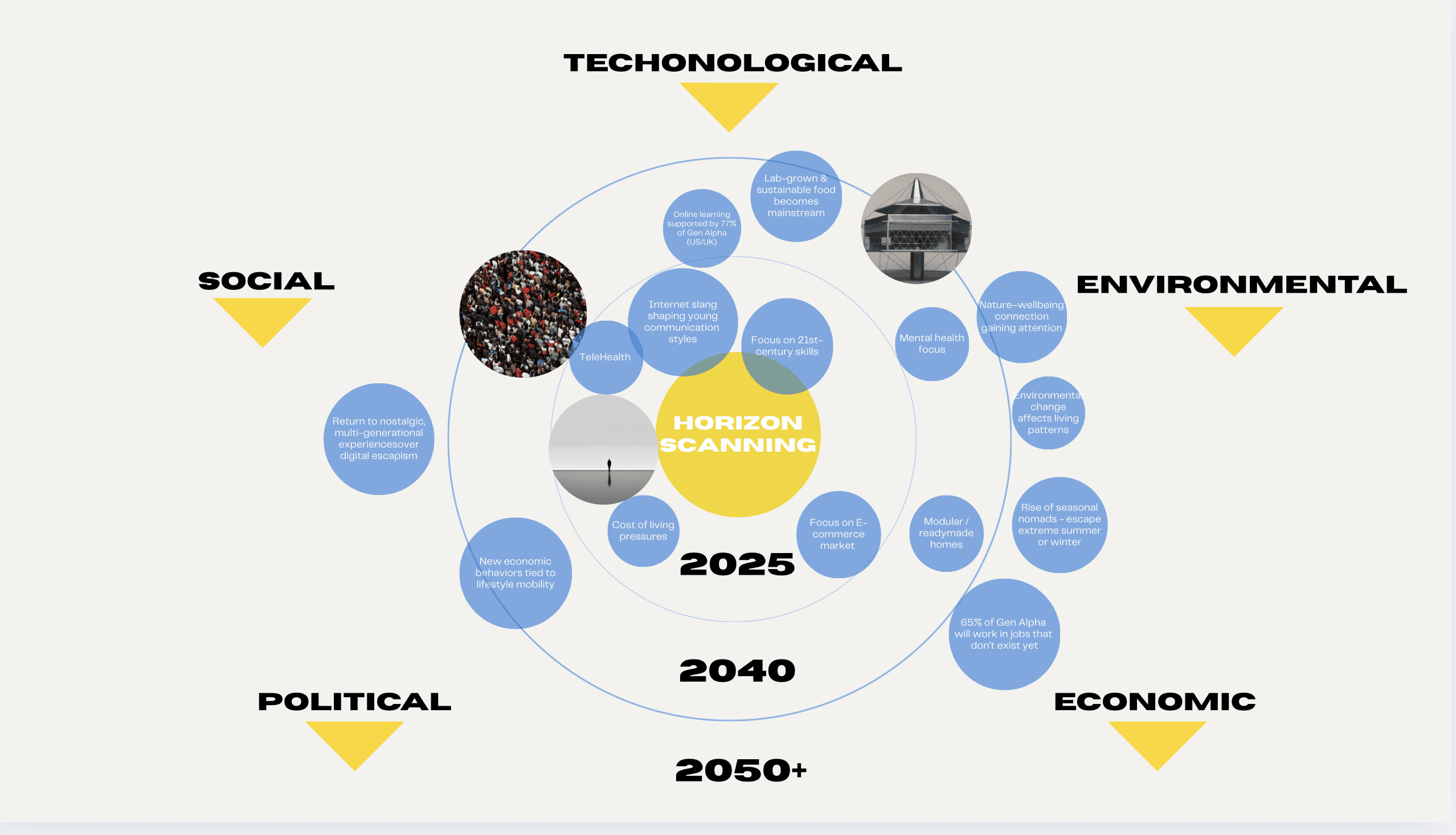 Developed 20+ year future scenarios exploring digital play, sustainability, and material innovation. Synthesised weak signals, trends, and uncertainties into strategic foresight narratives for senior stakeholders through scenario planning.