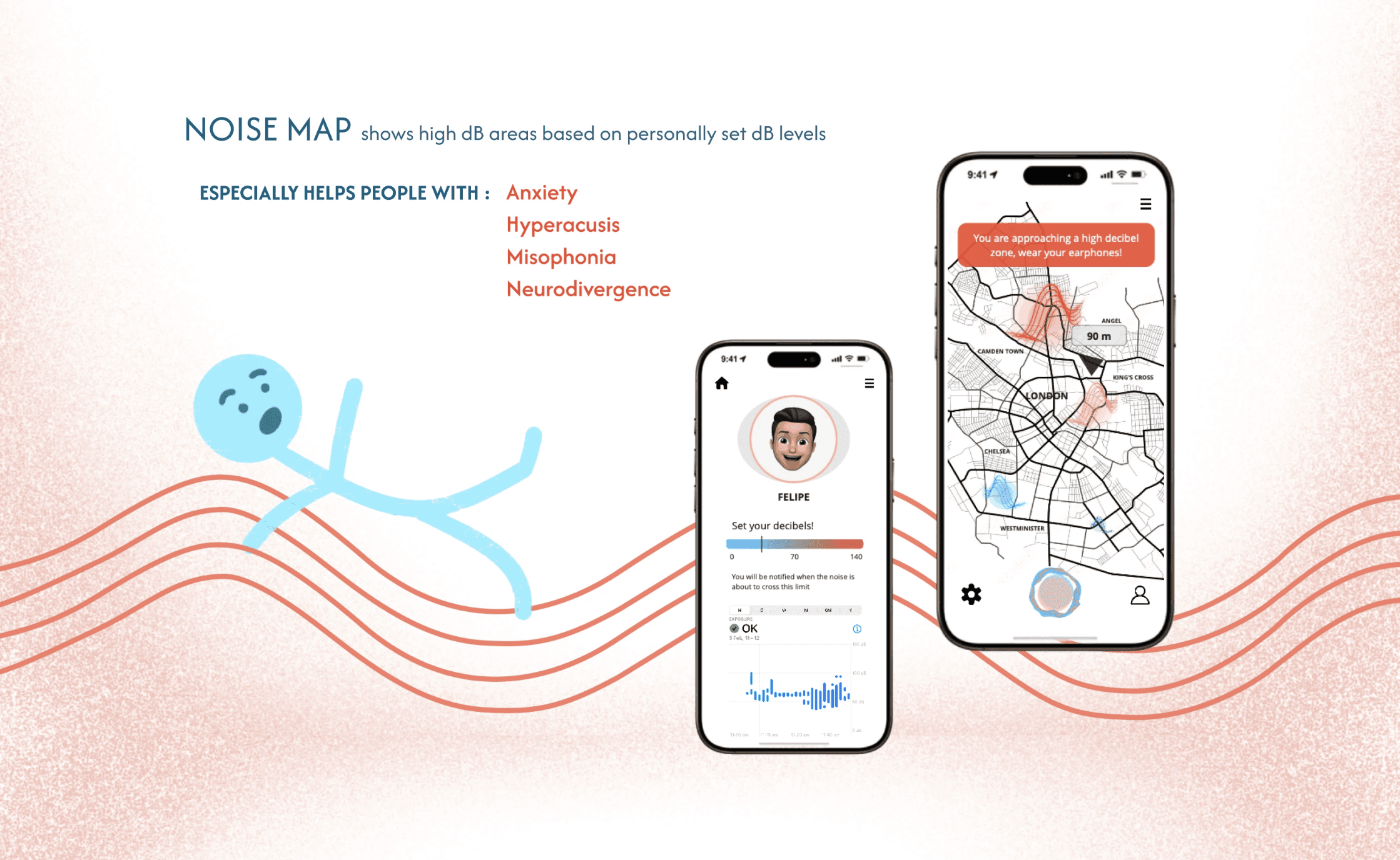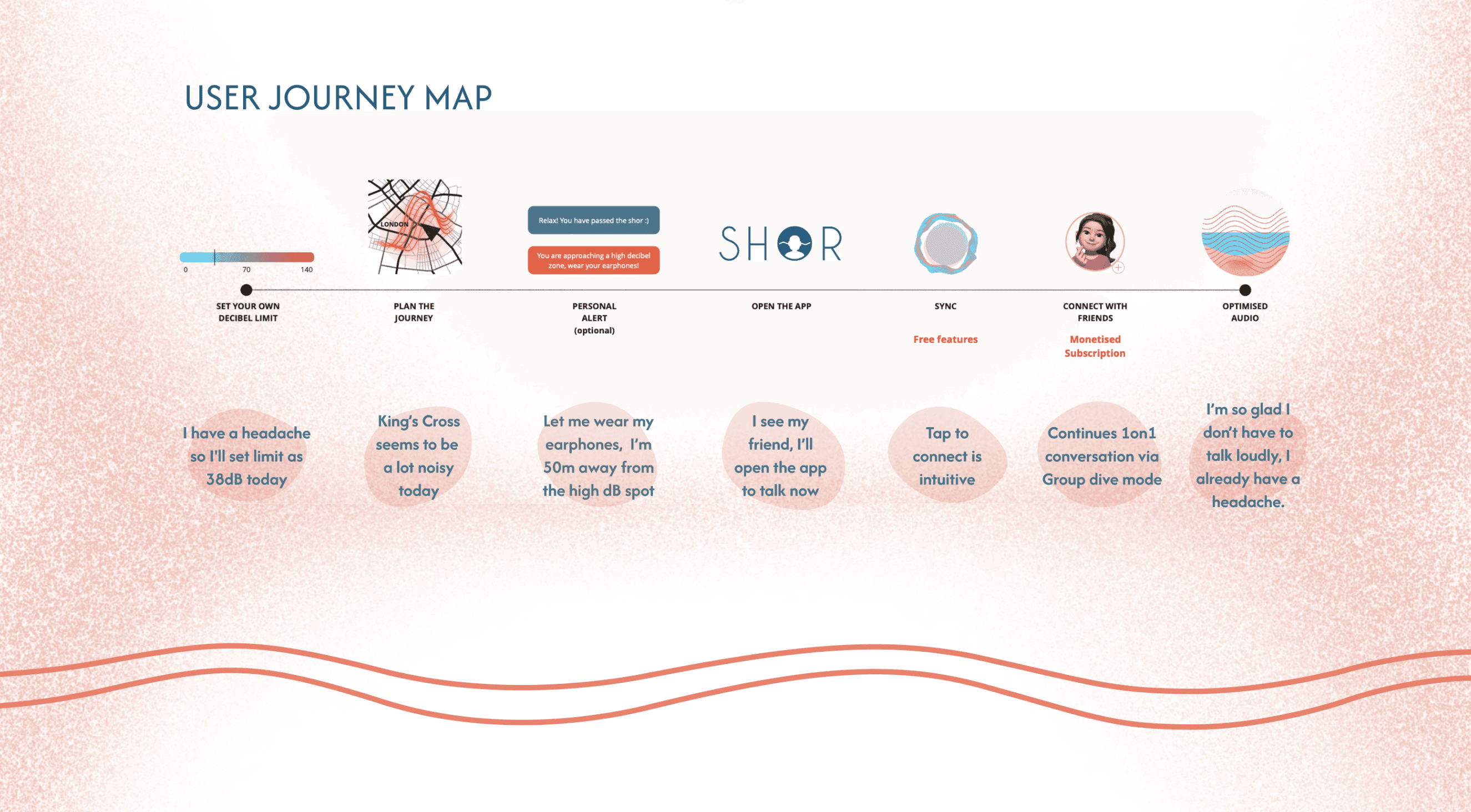 In a recent 2 day Creative Hack at UAL, we tackled the issue of urban noise pollution in London, not just as a nuisance, but as a genuine accessibility barrier. While the "tube screech" is annoying for the average commuter, for individuals with hyperacusis, misophonia, or neurodivergence, it is debilitating. We a multi-creative team of 7 developed Shor (/ʃɔː/), a service intervention that maps high-decibel zones and offers adaptive audio mediation, repositioning sound as a controllable layer of the urban experience.