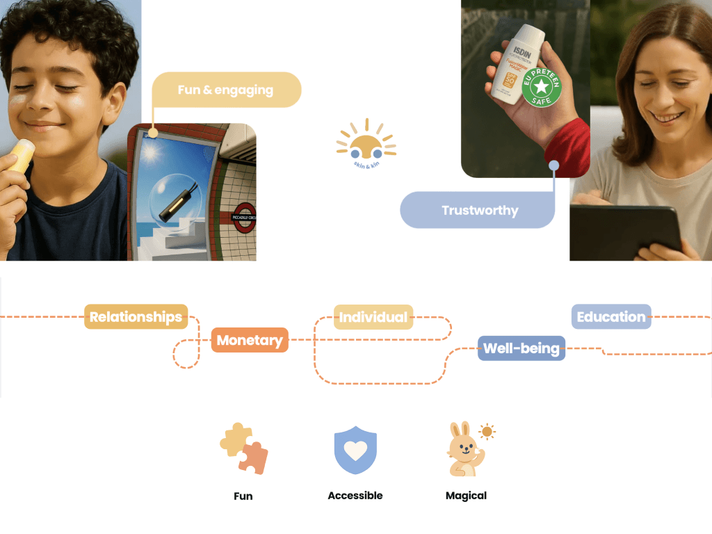 How might we encourage informed skincare habits when sun damage is invisible? We tackled the stigma and friction surrounding suncare, aiming to shift the mindset from "beauty" to "essential health" for both kids and adults.